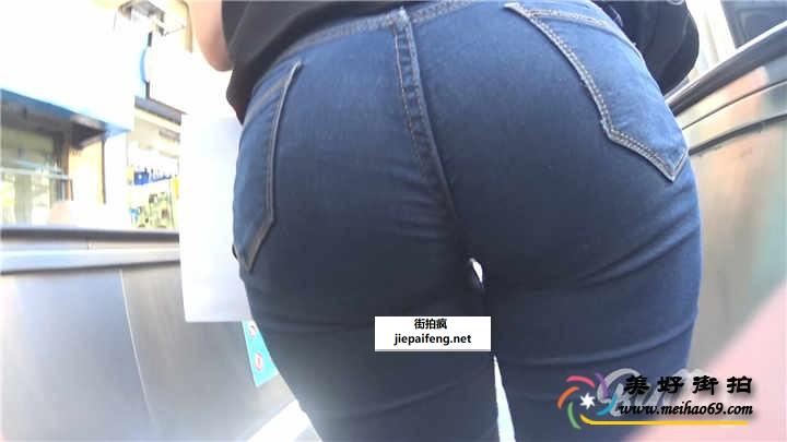 街拍黑色和蓝色紧身牛仔裤饱满丰臀洋妞[MP4/280M]