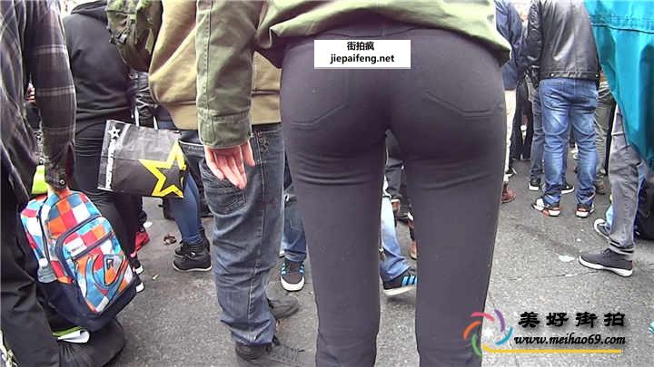 街拍洋妞灰色紧身打底裤性感美腿圆臀[MP4/348M]