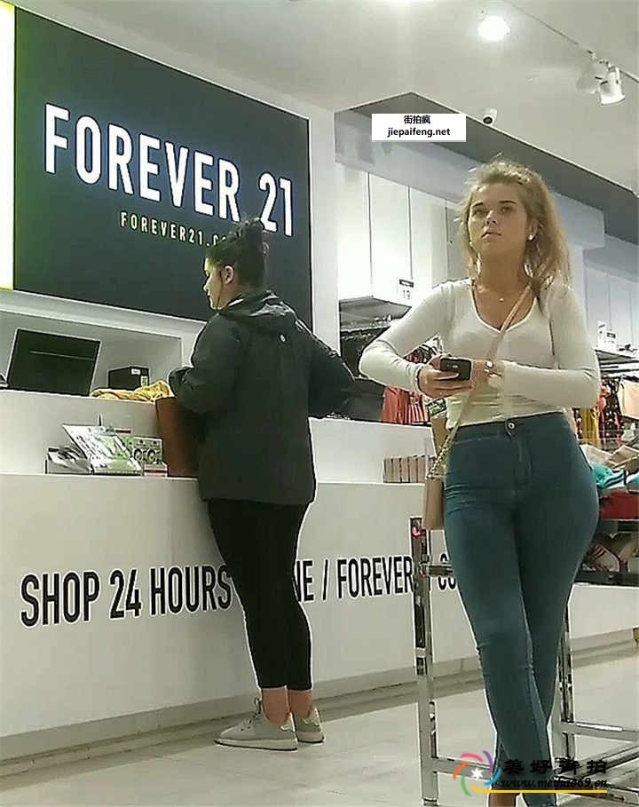 商场购物的蓝色紧绷牛仔裤金发美眉极品翘臀[MP4/691M]