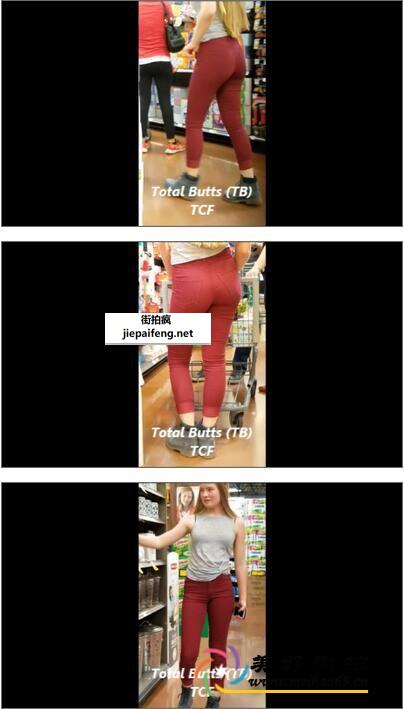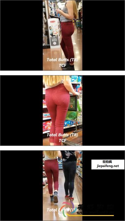 超市跟拍红色紧裤金发美眉极品饱满圆润翘臀[MP4/203M]