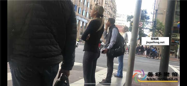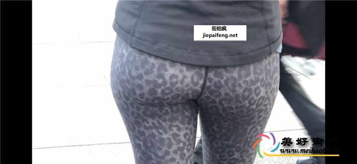街拍豹纹紧身打底裤金发洋妞性感圆润翘臀[MP4/343M]