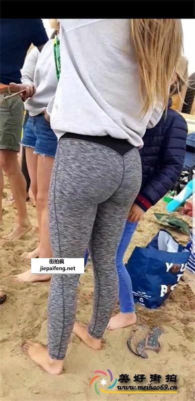 沙滩近拍灰色紧身打底裤金发少妇极品圆润翘臀[MP4/380M]