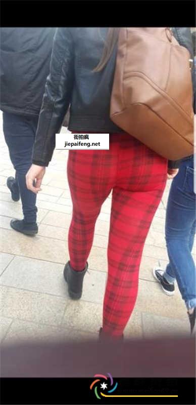 跟拍红色格子紧身裤长发漂亮洋妞极品饱满翘臀[MP4/441M]