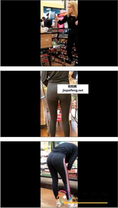 超市购物的两个金发洋妞紧身打底裤性感翘臀[MP4/536M]