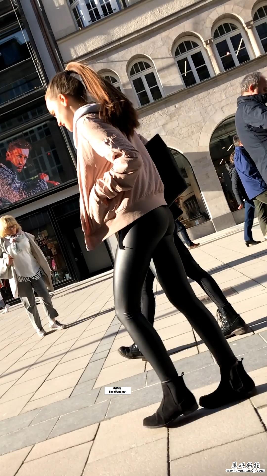 街拍黑色紧身皮裤漂亮洋妞美腿翘臀[MP4/936M]