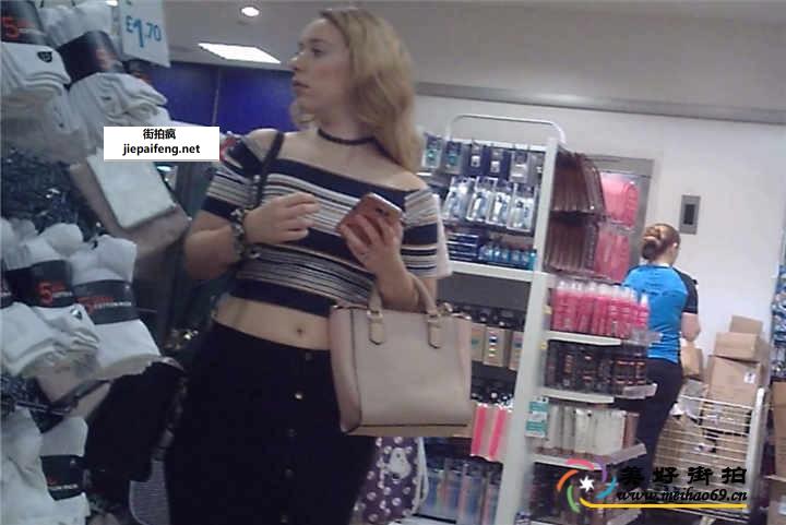 商场购物的黑色紧身打底裤饱满丰臀金发洋妞[MP4/244M]