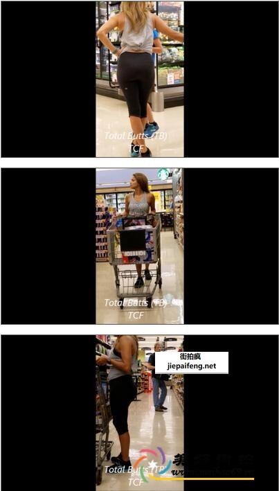 超市购物的紧身打底裤金发洋妞性感细腿圆润翘臀[MP4/382M]