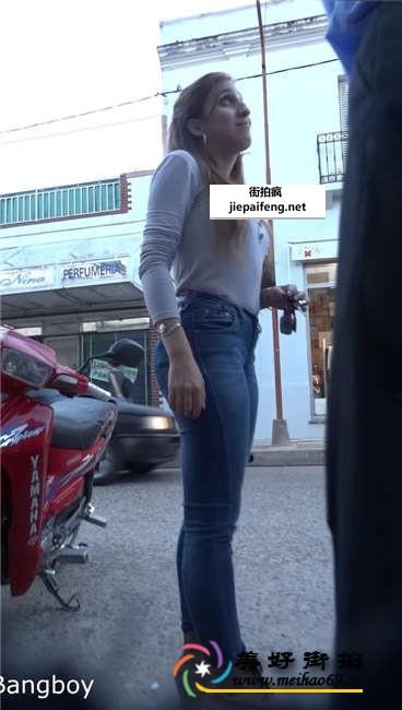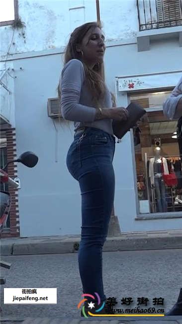 街拍蓝色紧绷牛仔裤金发洋妞极品圆润饱满翘臀[MP4/277M]