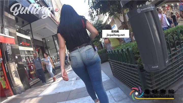 街拍蓝色紧绷牛仔裤黑发洋妞极品饱满圆润翘臀[MP4/507M]