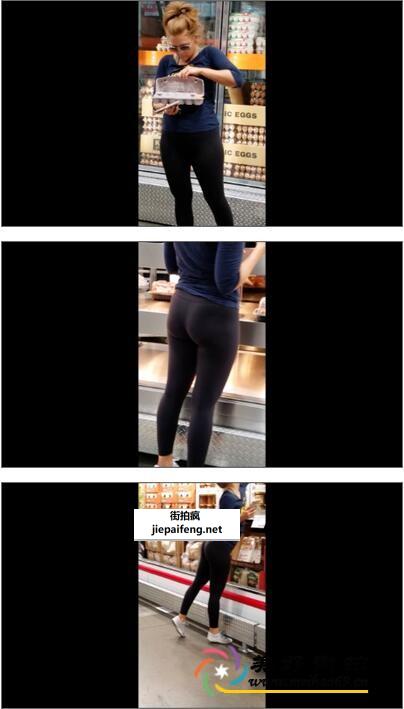 超市跟拍黑色紧身氨纶裤金发熟女圆润翘臀[MP4/260M]