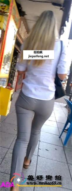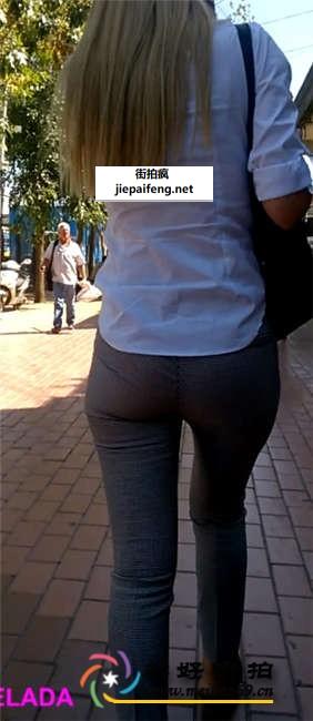 街拍灰色紧身裤金发漂亮OL洋妞性感美腿圆翘臀[MP4/120M]
