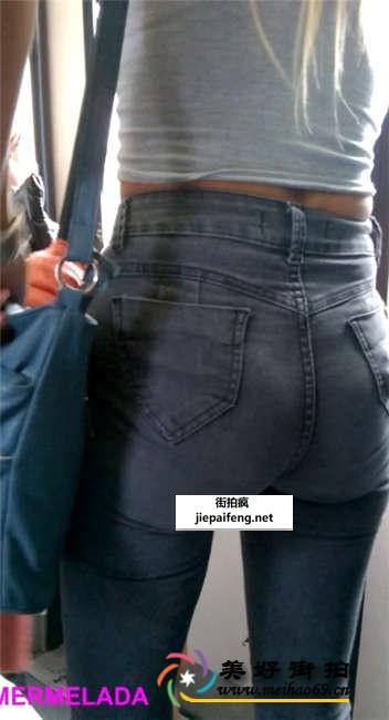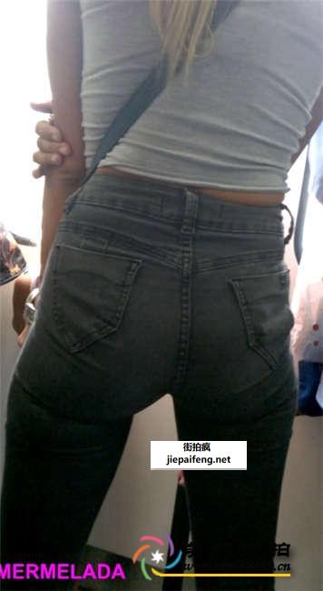 灰色紧身牛仔裤金发洋妞性感美腿圆臀[MP4/243M]
