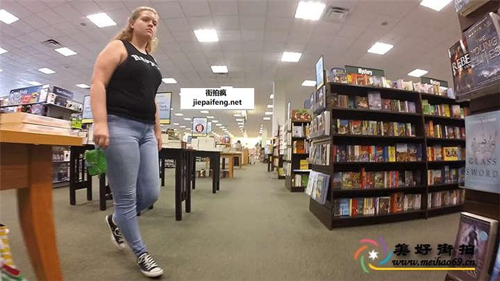 书店拍摄蓝色紧身牛仔裤金发洋妞饱满巨臀[MP4/100M]