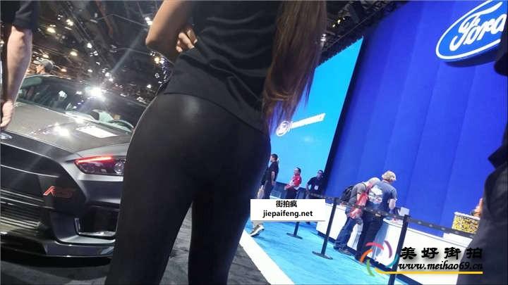 车展黑色紧身皮裤性感饱满圆润翘臀洋妞[MP4/85M]