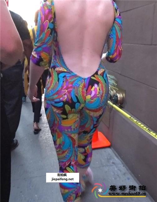 街拍紧身花裤大露背少妇圆翘臀[MP4/438M]