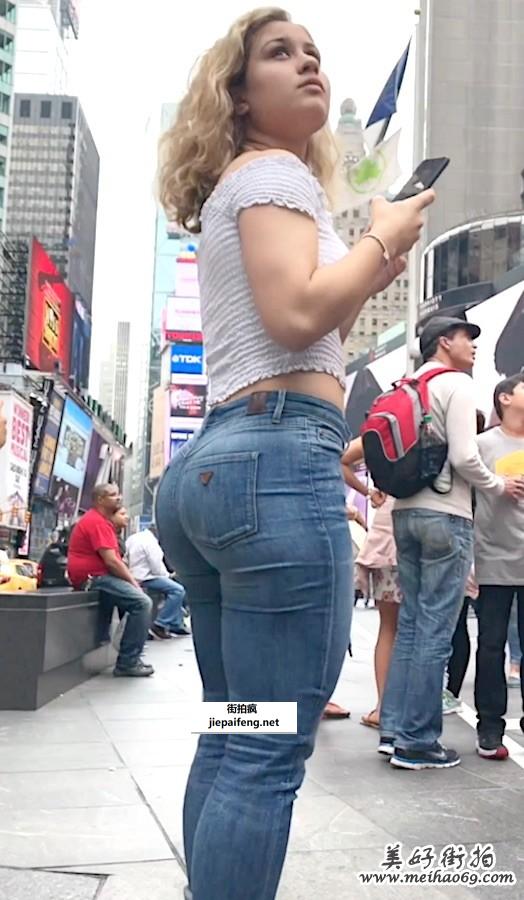 街拍蓝色紧身牛仔裤金发丰满洋妞圆润大屁股[MP4/278M]