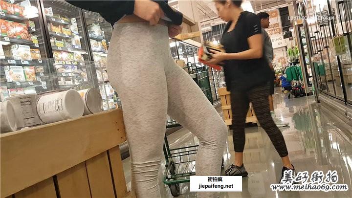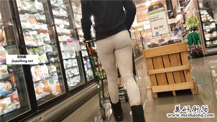 超市购物的灰色紧身打底裤洋妞性感圆润翘臀[MP4/206M]