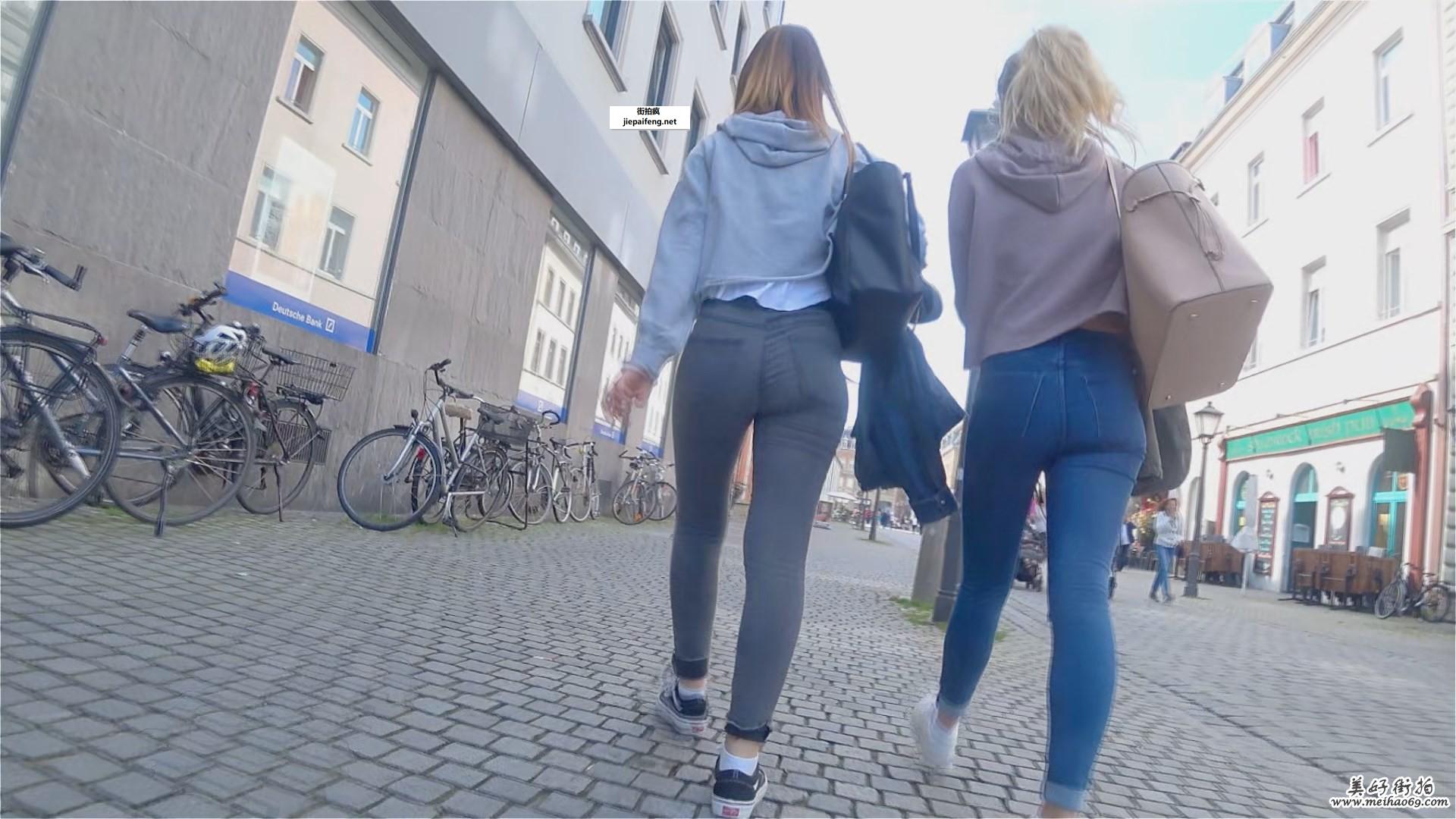 街拍灰色和蓝色紧身牛仔裤年轻美眉性感圆润翘臀[MP4/152M]