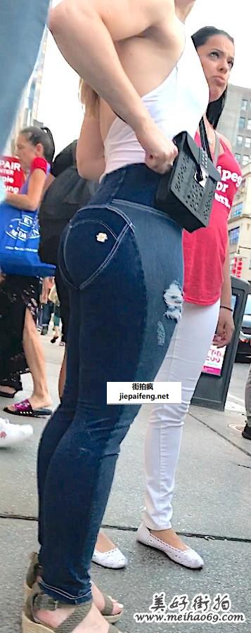 街头跟拍蓝色紧绷牛仔裤金发洋妞饱满圆润翘臀[MP4/655M]