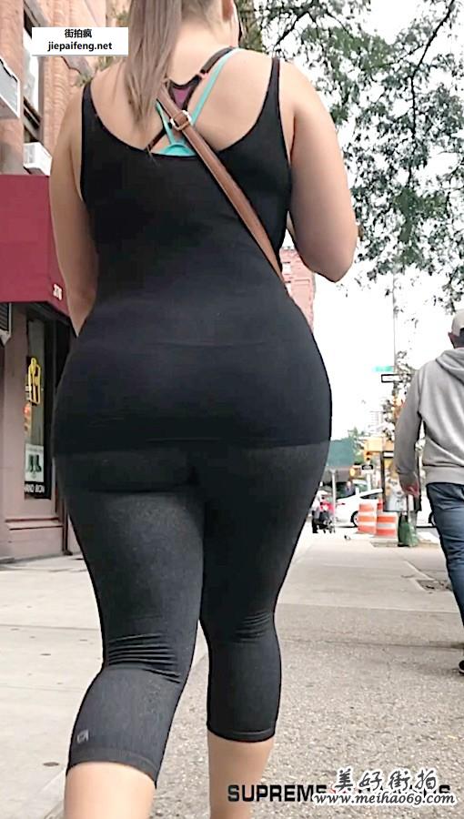 街拍灰色紧身打底裤饱满丰臀金发洋妞[MP4/286M]