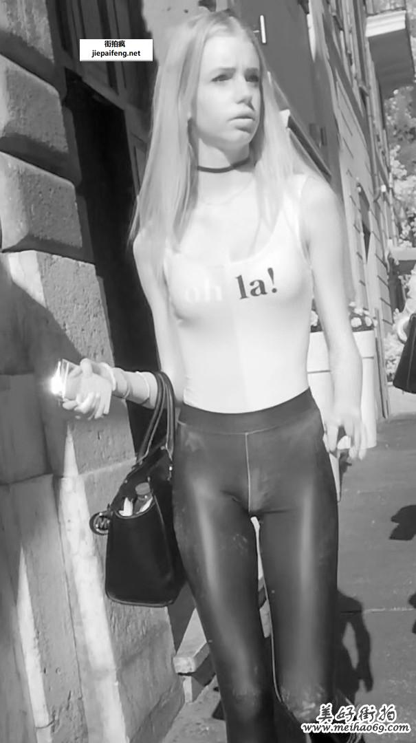 跟拍黑色紧身打底裤金发洋妞性感翘臀极品长腿[MP4/105M]