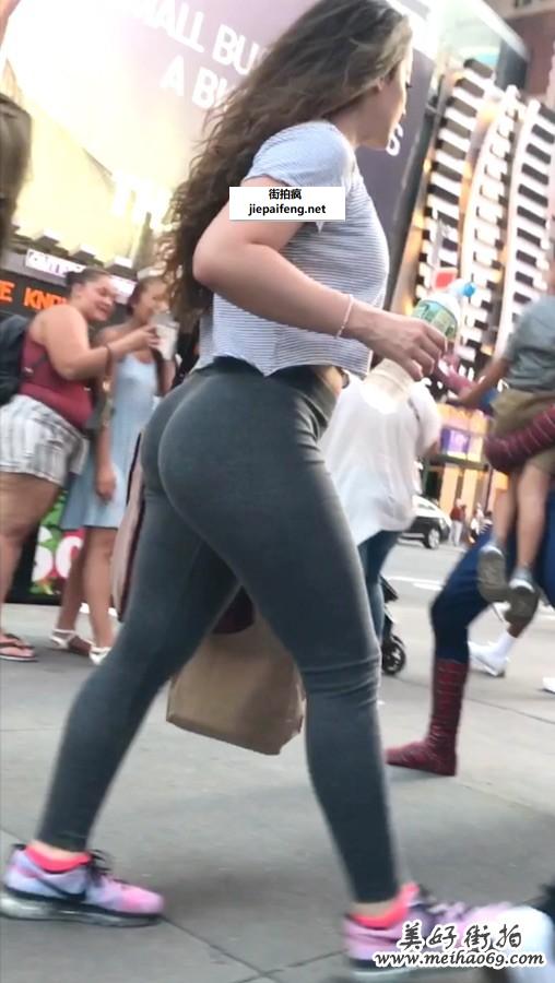 街拍灰色紧身打底裤卷发洋妞性感圆润饱满翘臀[MP4/771M]