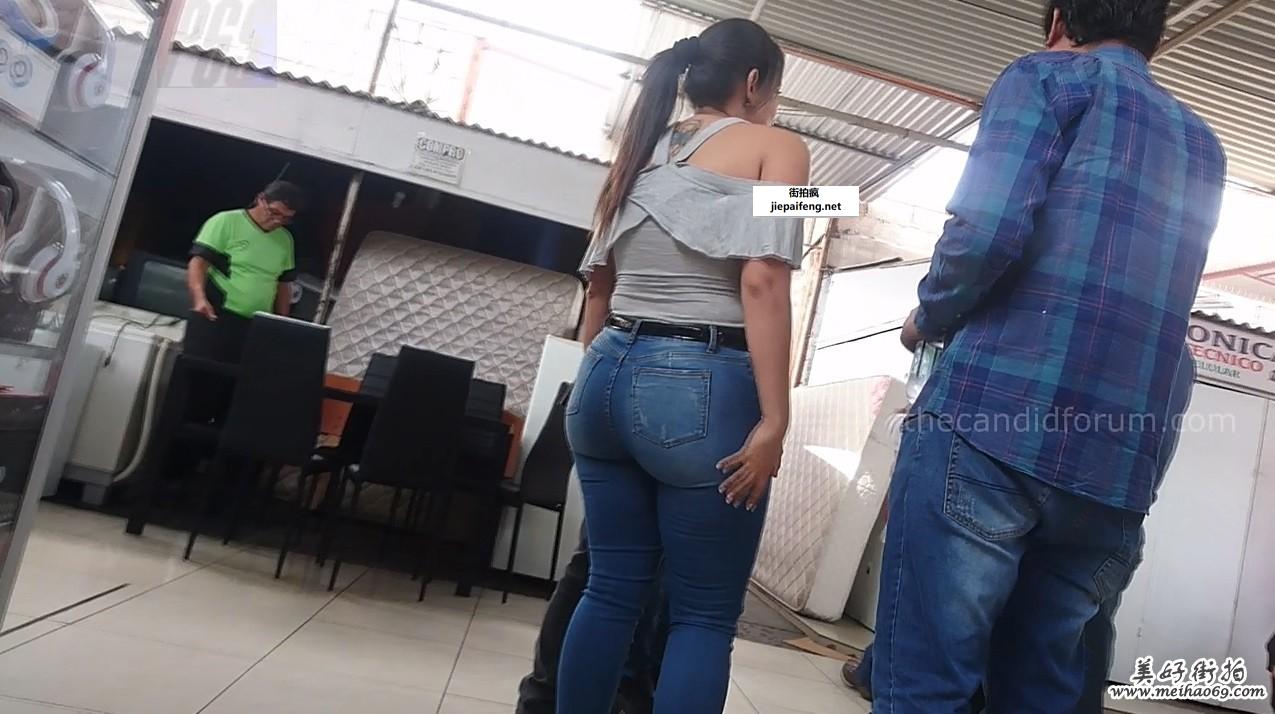 蓝色紧绷牛仔裤饱满圆润大屁股少妇[MP4/91M]