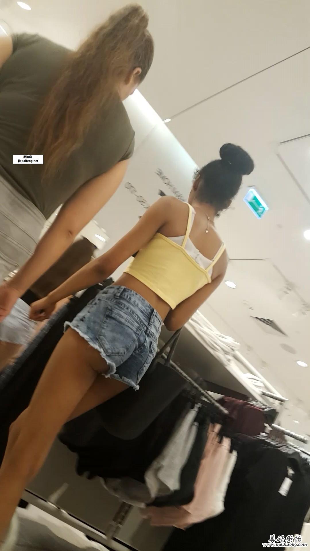 商场拍摄蓝色牛仔热裤和牛仔裤洋妞性感圆润翘臀[MP4/400M]