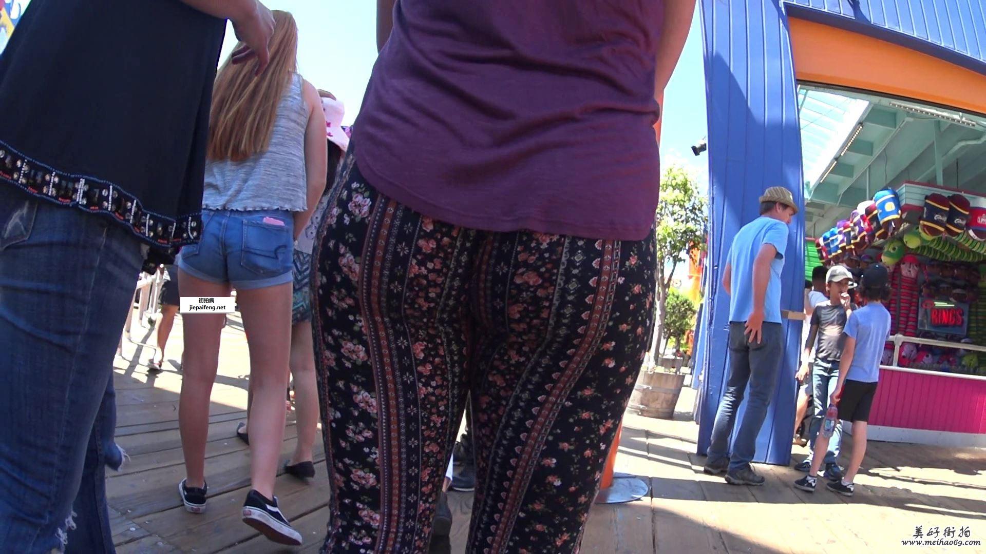 游乐园跟拍紧身花打底裤金发洋妞性感饱满圆润翘臀[MP4/749M]