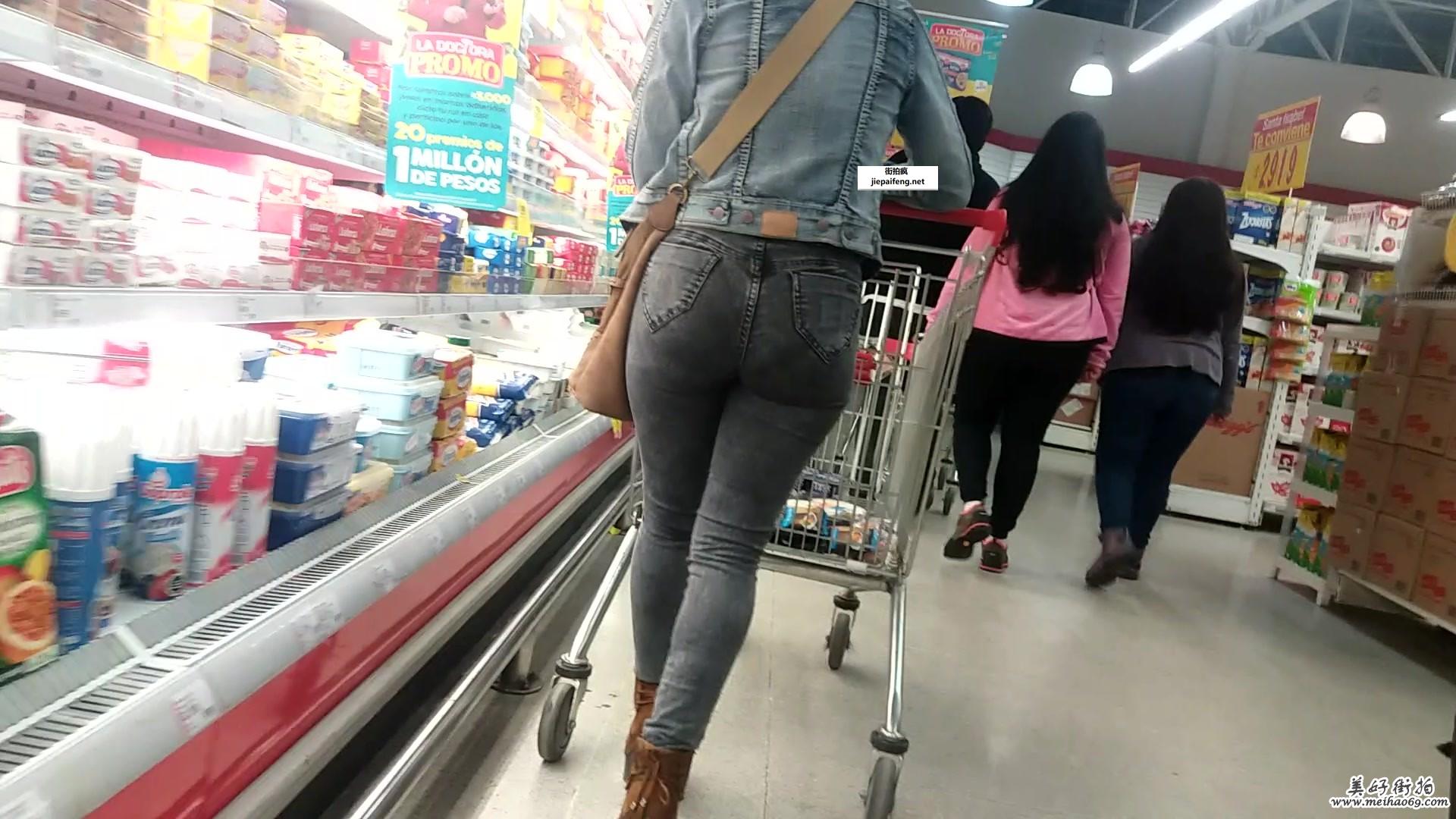超市购物的灰色紧身牛仔裤洋妞极品性感圆润翘臀[MP4/125M]