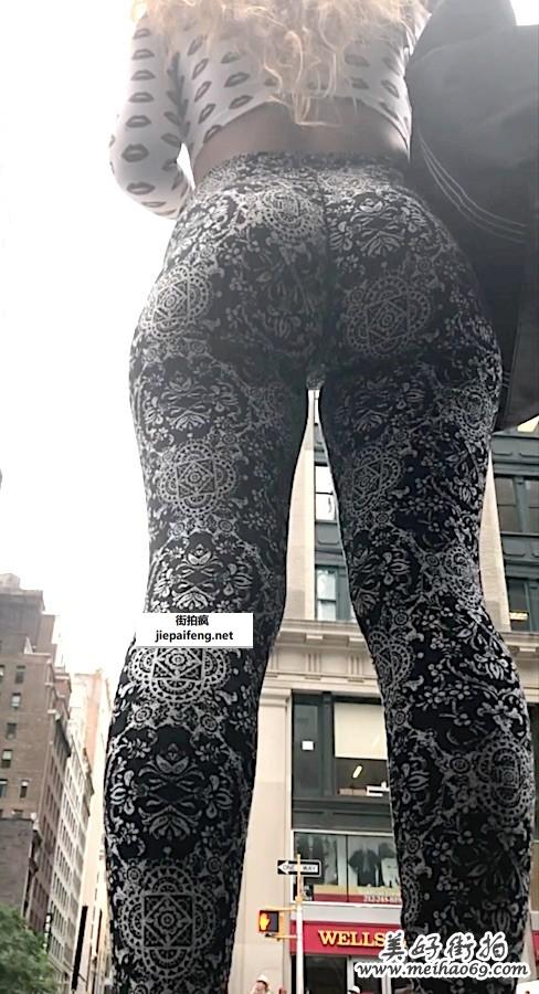 街拍紧身打底裤金发洋妞性感饱满圆润翘臀[MP4/1.26G]