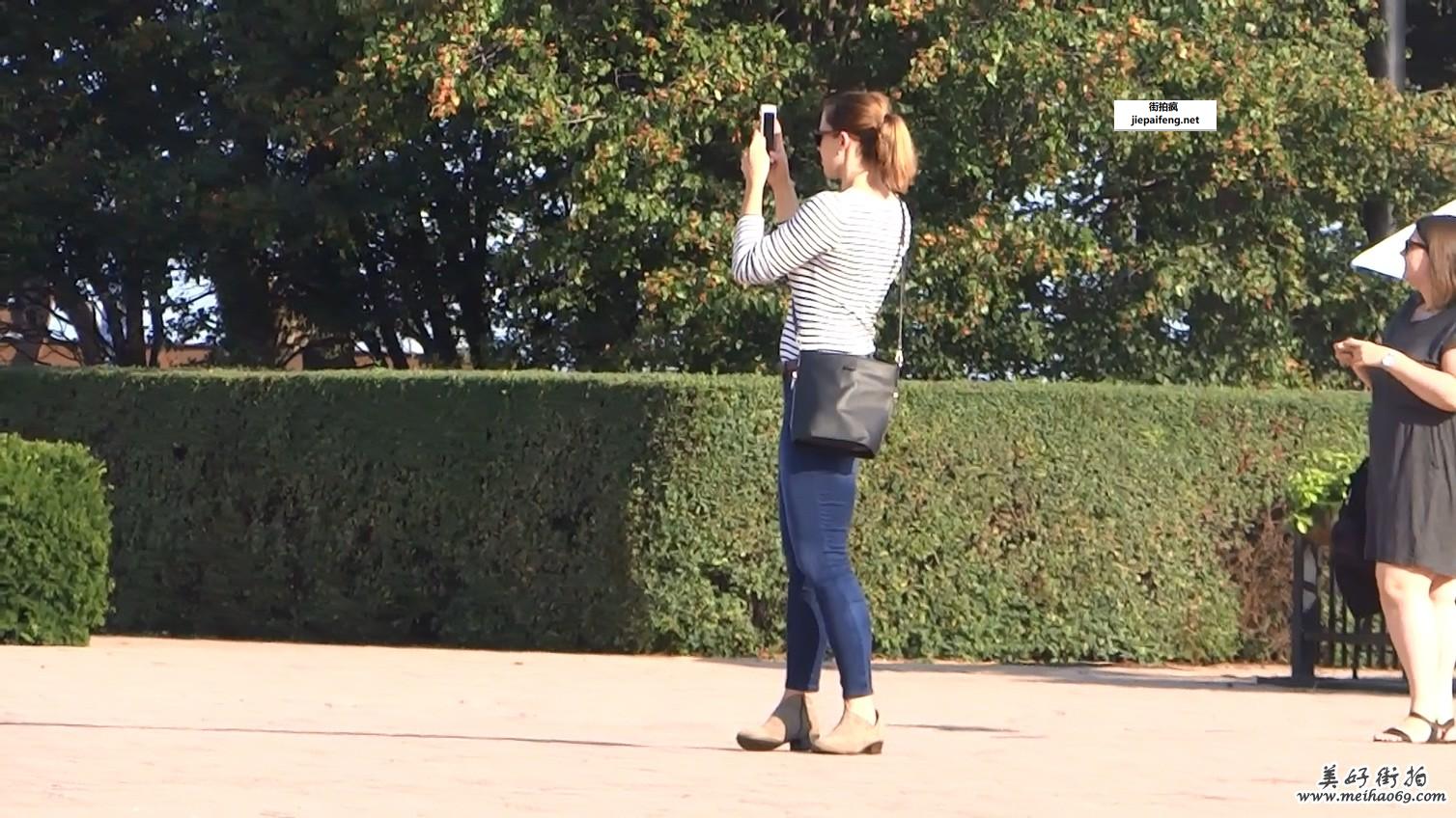 公园拍摄蓝色紧身牛仔裤漂亮洋妞性感紧臀[MP4/115M]