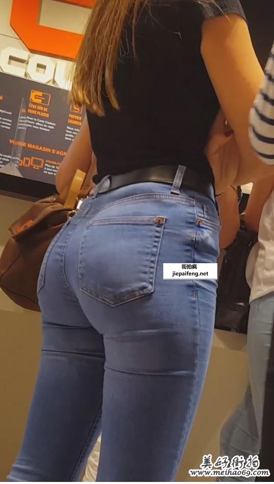 蓝色紧身牛仔裤金发洋妞性感饱满圆润翘臀[MP4/208M]
