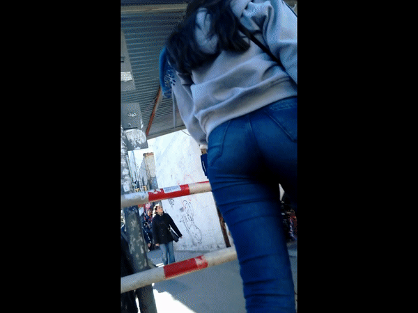 街拍蓝色紧身牛仔裤洋妞性感圆润翘臀[MP4/220M]