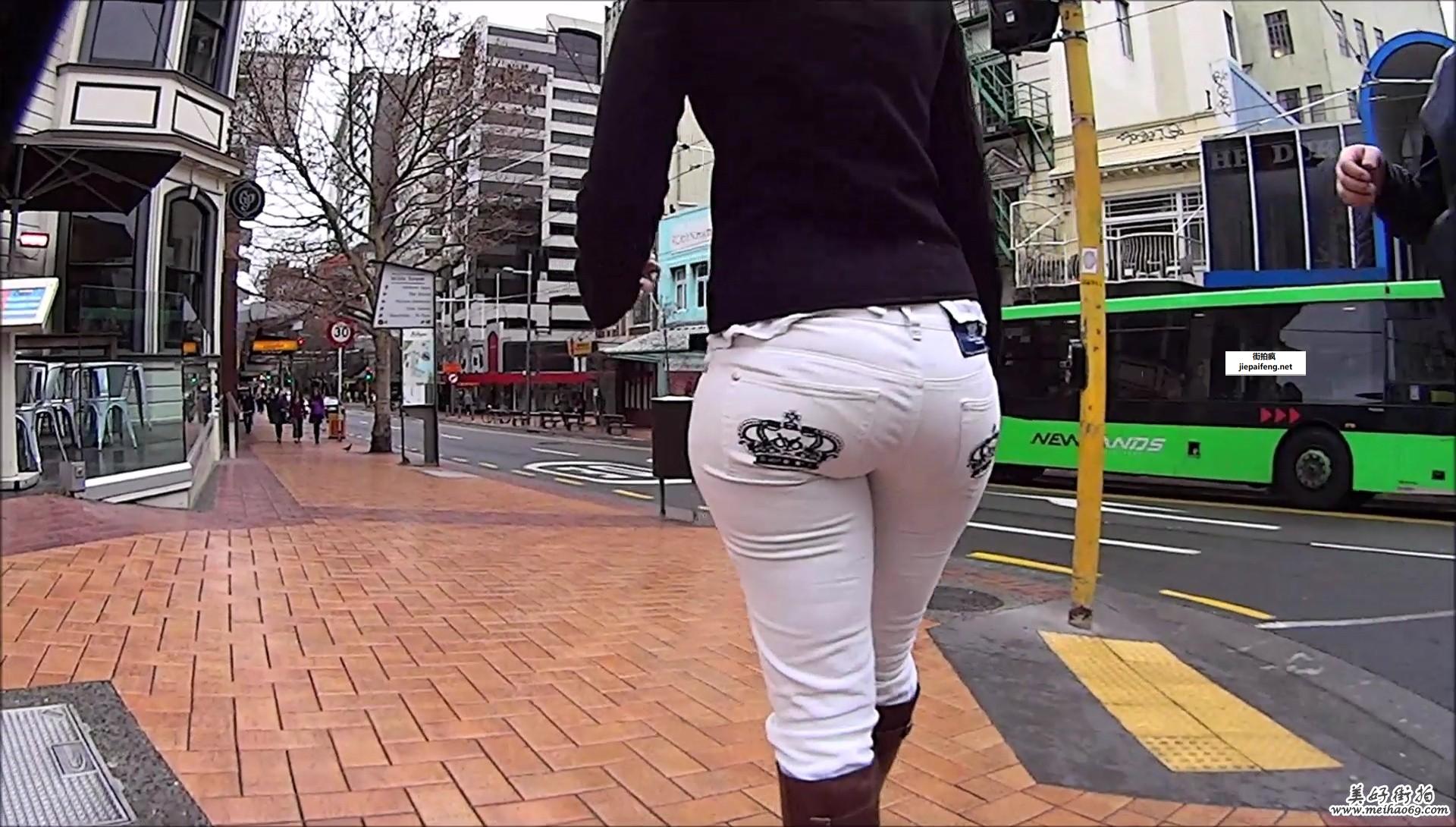 街拍白色紧身裤饱满圆润大屁股洋妞[MP4/153M]