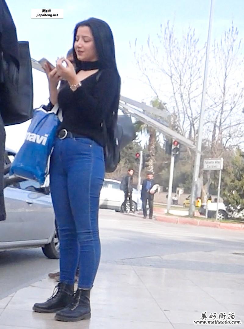 街拍蓝色紧绷牛仔裤丰满可爱漂亮洋妞极品丰臀[MP4/602M]