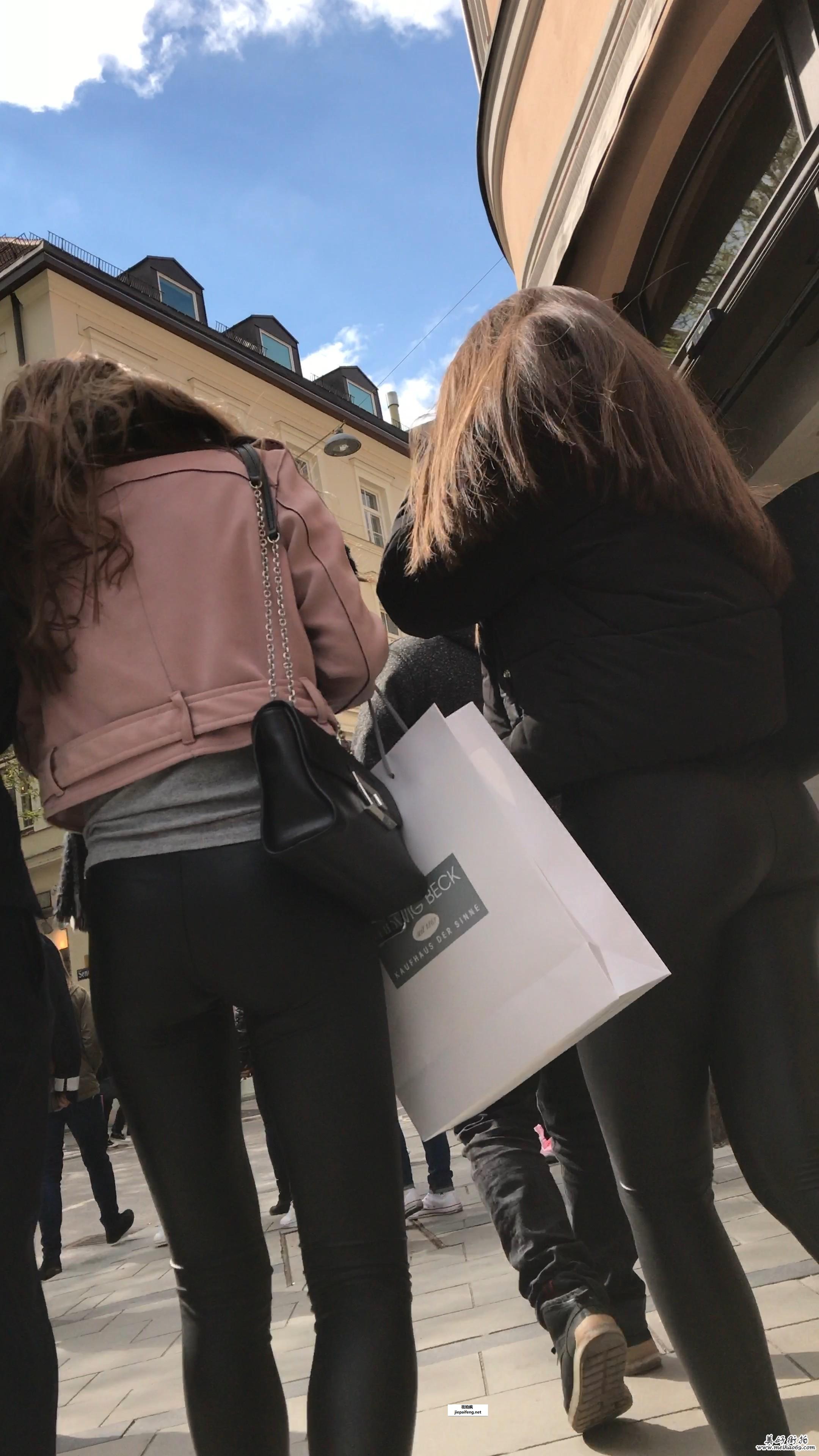 跟拍两个黑色紧身皮裤洋妞性感圆润翘臀[MP4/0.99G]