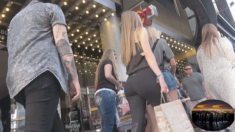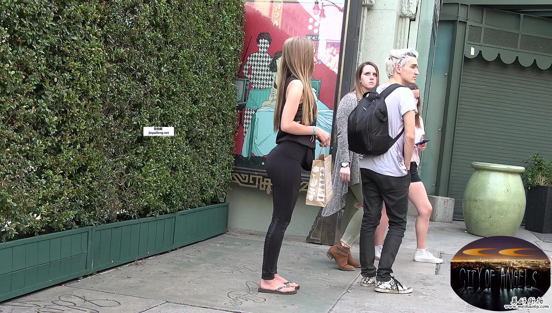 街拍黑色紧身打底裤金色长发美女极品圆润翘臀[MP4/1G]