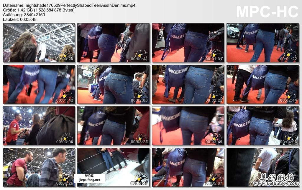 展会跟拍深蓝紧身牛仔裤饱满圆润大屁股洋妞[MP4/1.42G]