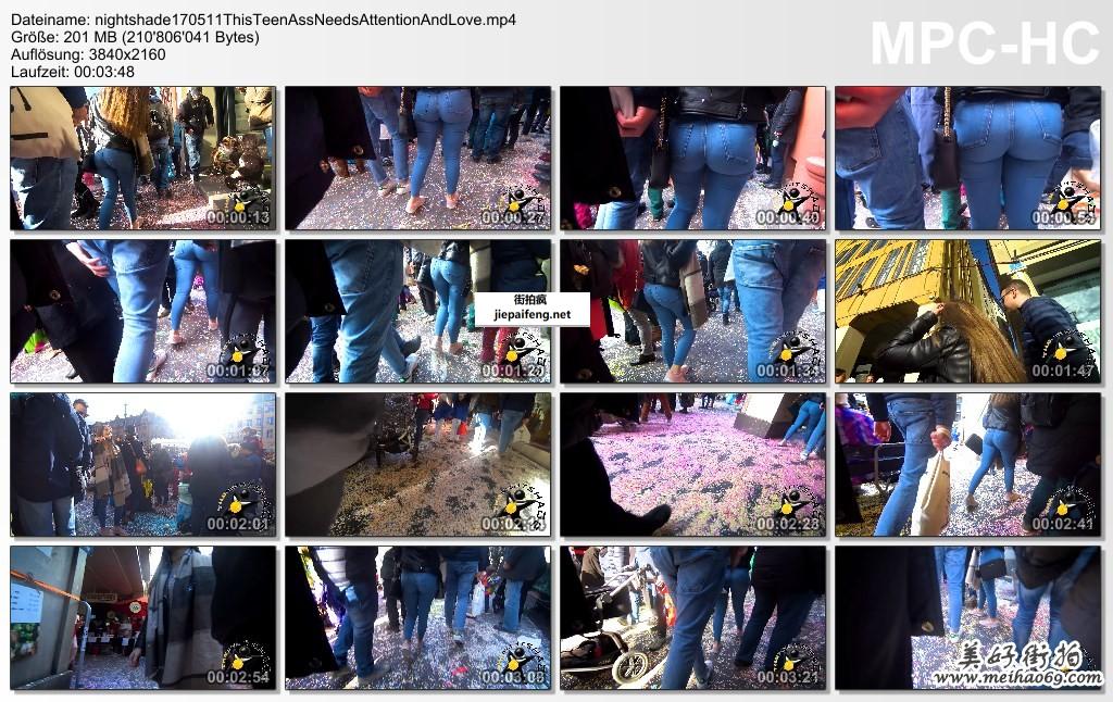街拍蓝色紧绷牛仔裤金发少妇极品圆润翘臀[MP4/201M]