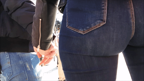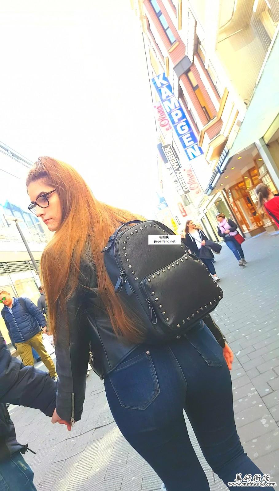 街拍蓝色紧身牛仔裤金发洋妞性感圆润翘臀[MP4/470M]