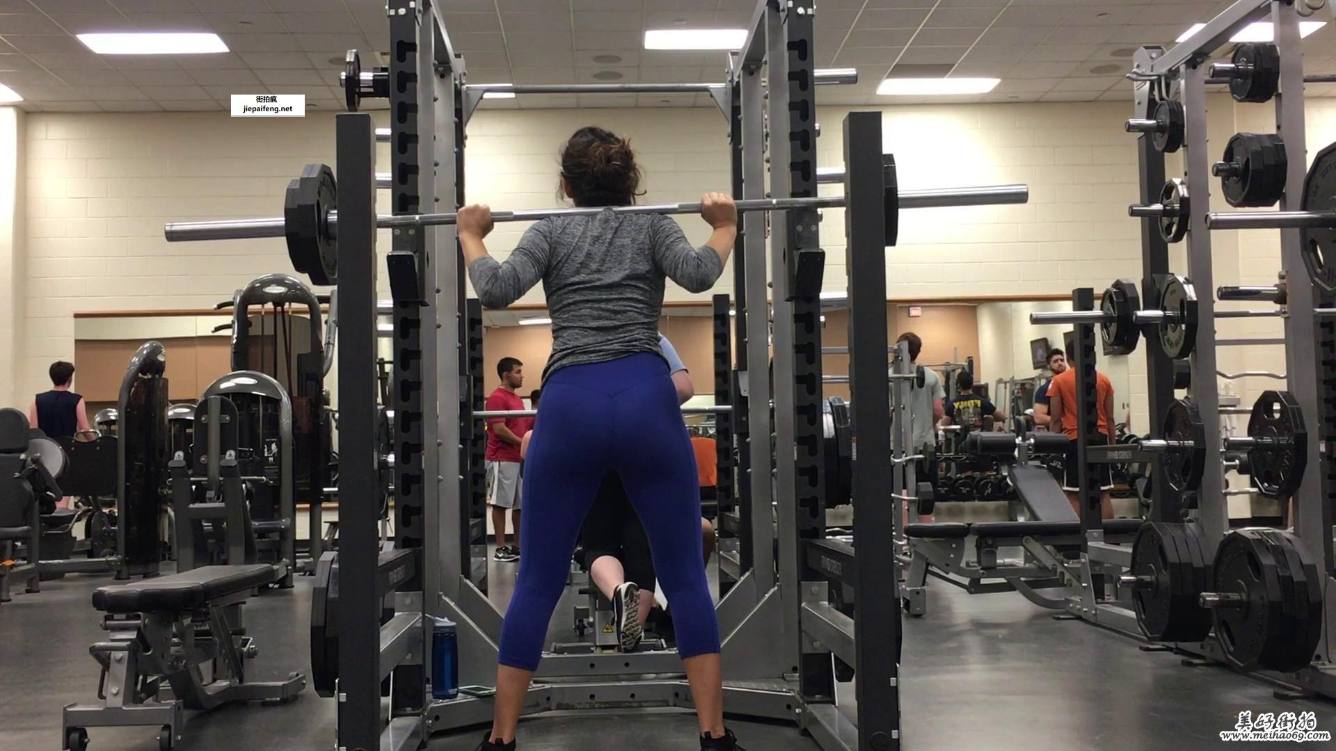健身房锻炼的蓝色紧身运动裤洋妞性感翘臀[MP4/614M]