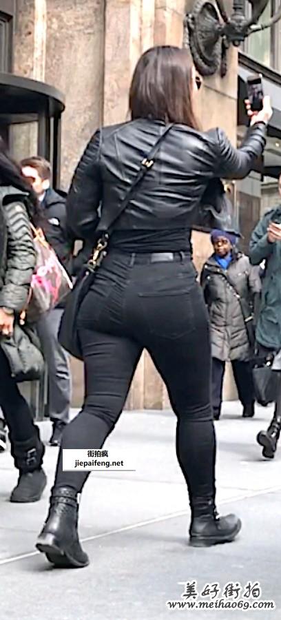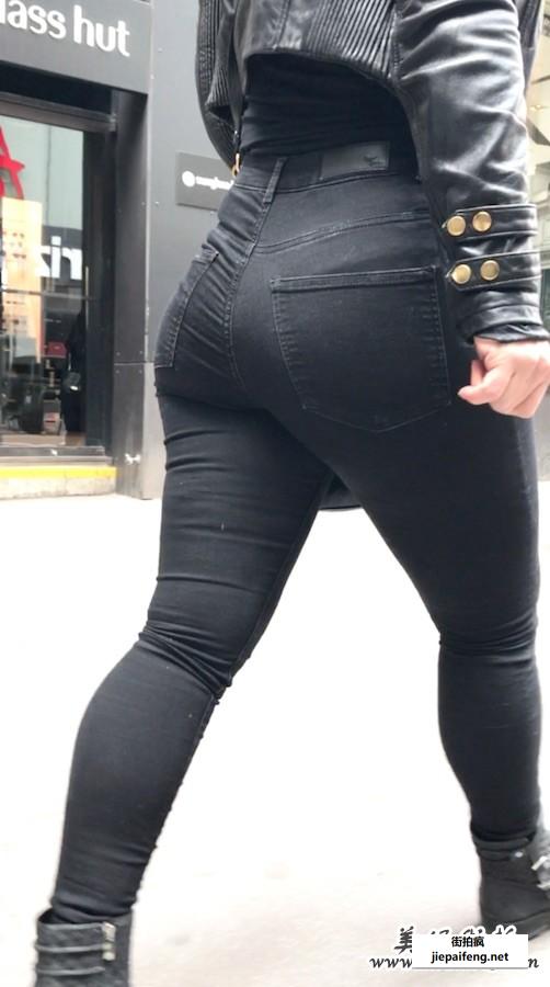 街拍黑色紧身牛仔裤丰满洋妞饱满圆润大臀[MP4/290M]