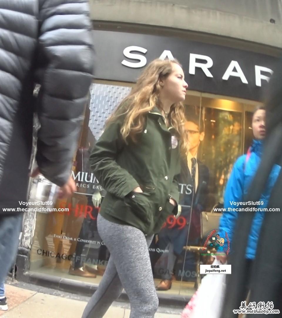 街拍灰色紧身打底裤性感饱满圆润翘臀金发少妇[MP4/742M]