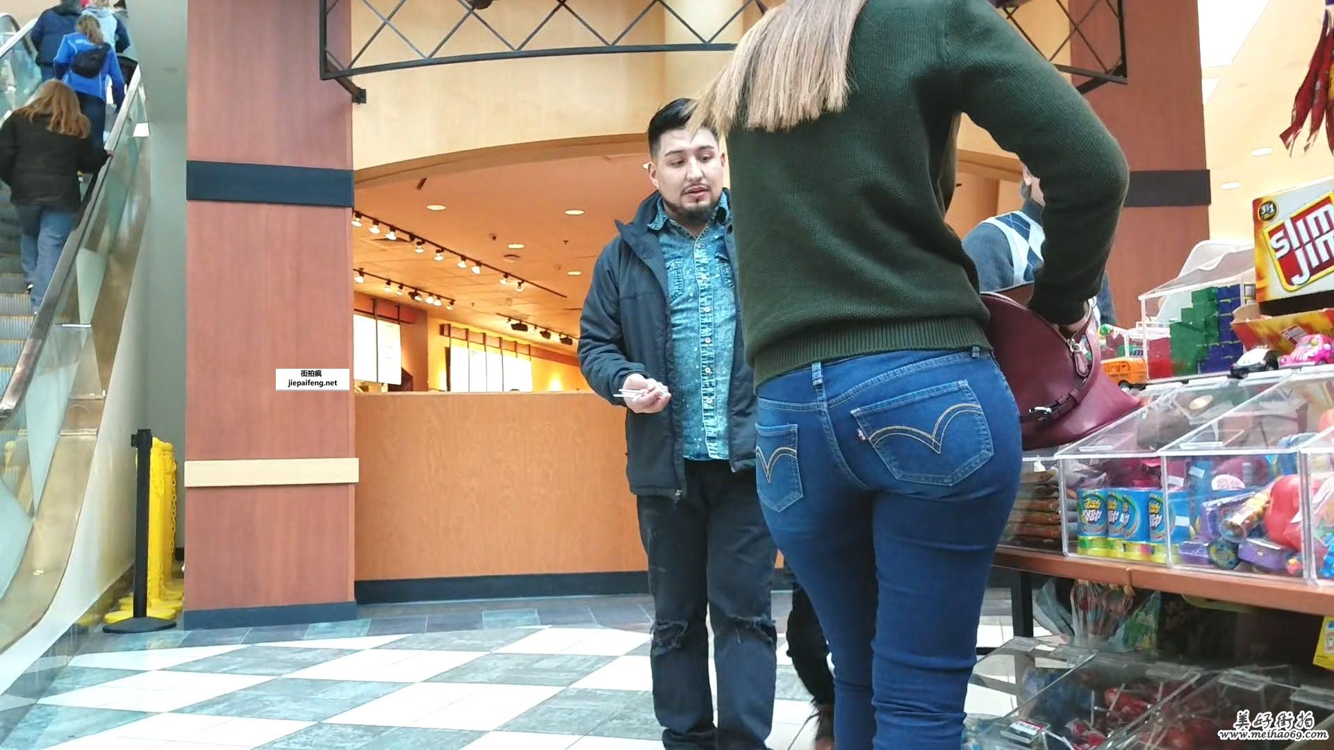 蓝色紧身牛仔裤金发洋妞极品饱满圆润翘臀[MP4/291M]
