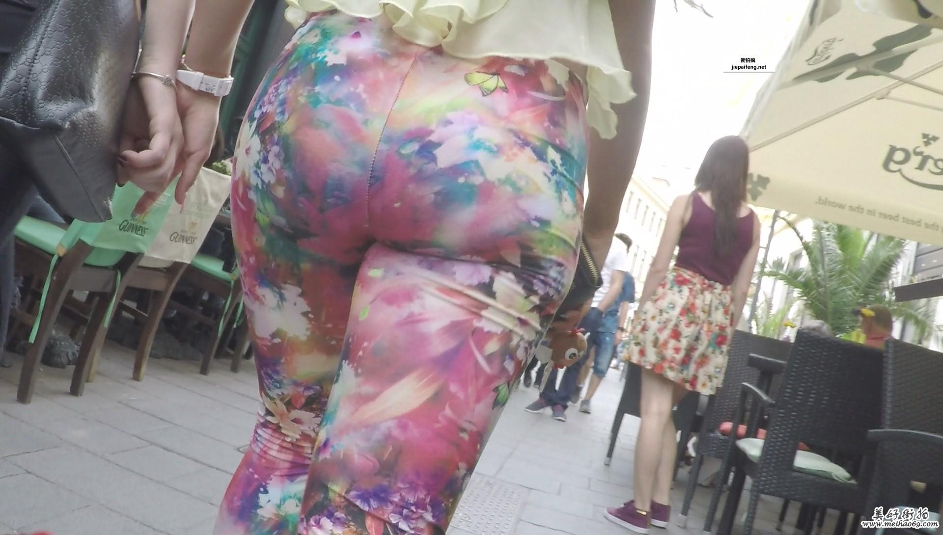 街拍紧绷花打底裤饱满圆润大屁股金发洋妞[MP4/372M]