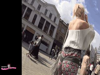 街拍休闲宽松花裤金发洋妞饱满性感大臀[MP4/133M]
