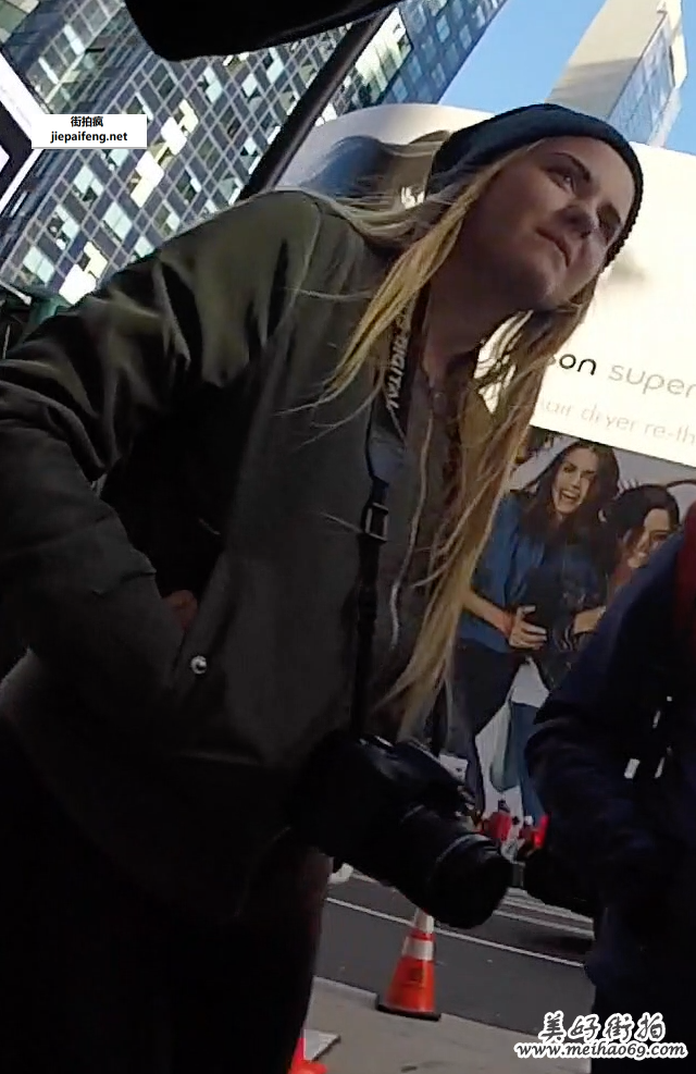 街拍金发洋妞黑色紧绷皮裤饱满圆润大屁股[MP4/282M]