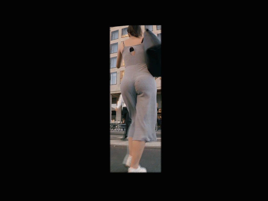 街拍灰色休闲连体裤极品圆润翘臀洋妞[MP4/483M]