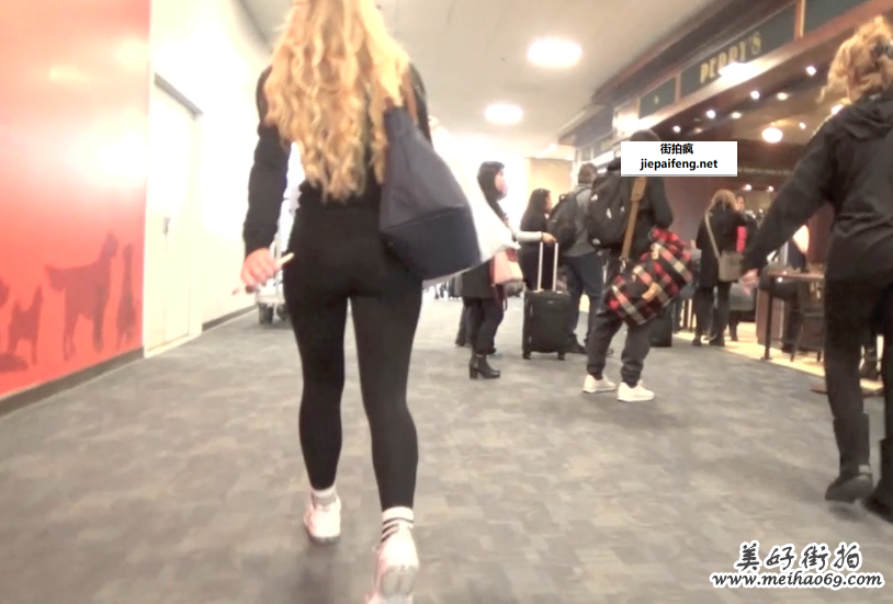 机场跟拍黑色紧身打底裤性感圆臀金发洋妞[MP4/158M]